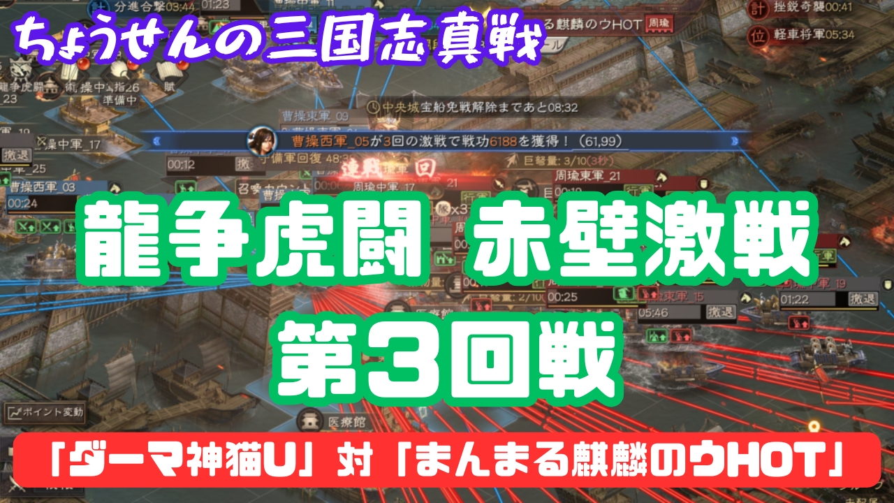 #517【貂蝉の三国志真戦】 龍争虎闘 赤壁激戦 第3回戦 「ダーマ神猫U」対「まんまる麒麟のウHOT」 【三国志战略版】#龍争虎闘記者団