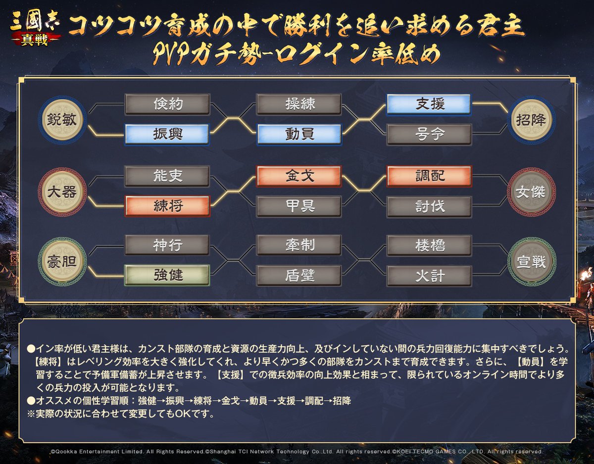 各計略の詳細は画像でまとめてました、特徴的な効果は赤字でマークしましたので、ご確認してください