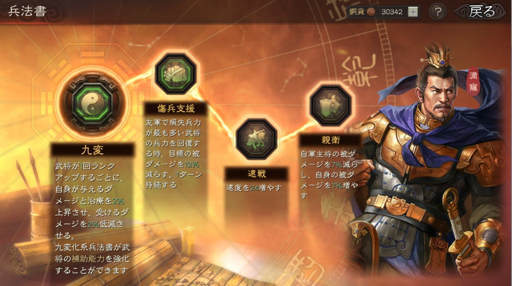 また、回復寄りにして九変・傷兵支援・救援馳参・掩虚も人気の兵法書です。