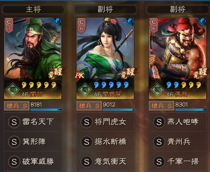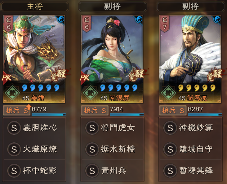 前期も紹介しましたが、今期もこの蜀槍は非常に強力で、多くのメタ編成となっています。