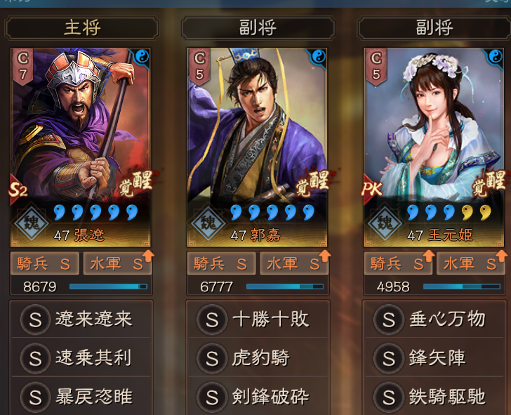 例えば、張遼姫騎は鋒矢陣が必須の編成ですので、その編成との共存ができます。