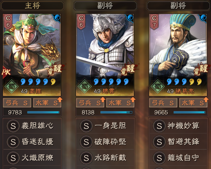 才俊槍は以前から強編成として、存在していましたが、アクティブ戦法に依存した部隊が増えていることもあり、諸葛亮が入った編成が強力なメタ編成になっています。