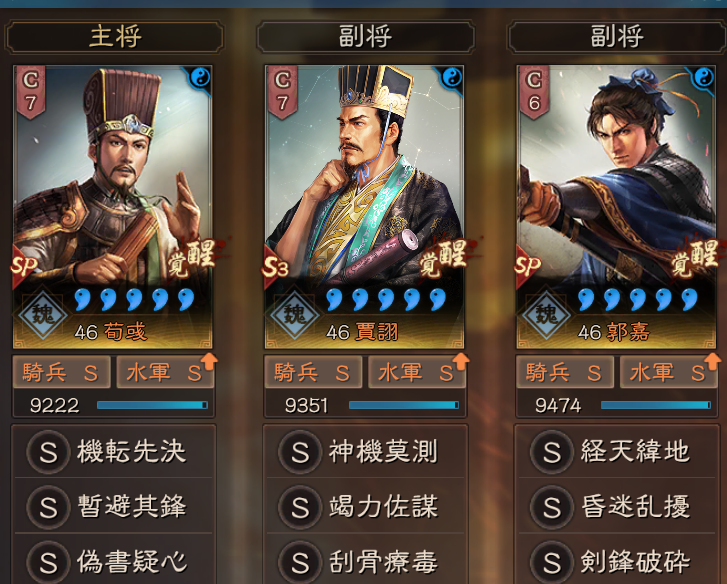 竭力佐謀の代わりに陥陣営を用いているパターンも多く、どちらも優秀な編成です。