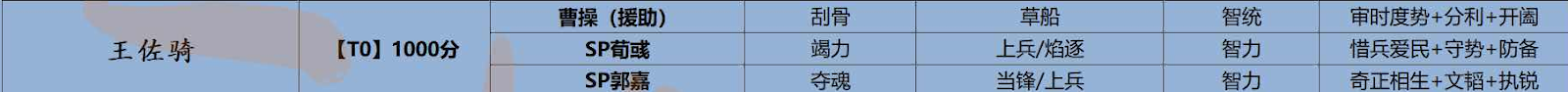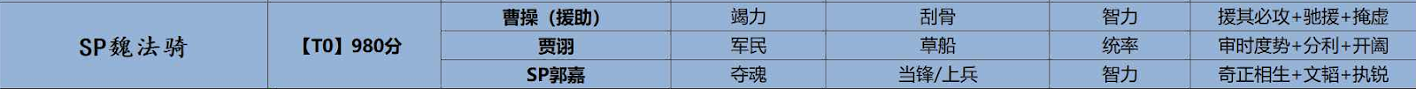 今までは、SP魏法騎が頭一つ抜けており、そこに富貴騎と王佐騎が追いかけるという展開でしたが、上兵伐謀の登場により、魏の騎馬編成としては、最高評価となるのではないかと思います。