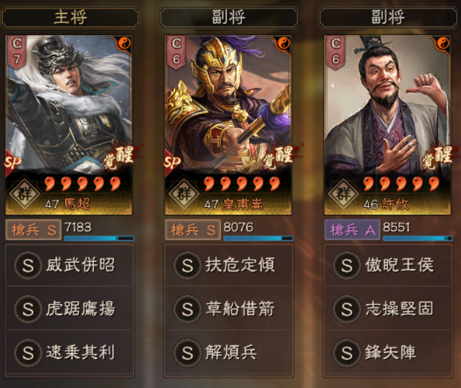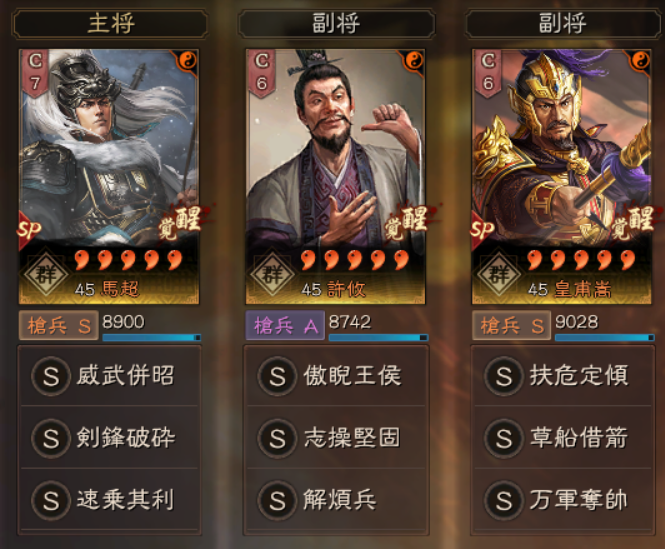 現環境を見てみると、ほぼ活躍しているのは皇馬槍の形で、SP馬超が中心に回っている印象です。