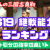 継戦率は75%と、わずかに大尉盾よりも低い結果となりましたが、大尉盾の勝率は30%程度であるのに対し、こちらのSP朱儁の盾編成は47%と、勝率ベースでいうとこちらの方が高く、総合的に大尉盾よりも強いという評価も感覚的には正しいと思いました。