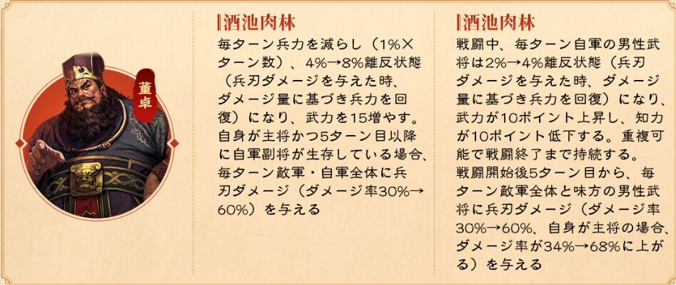 酒池肉林の効果は、5ターン目から発動だったものが2ターン目になるというのは、董卓使いの時代がきそうです。