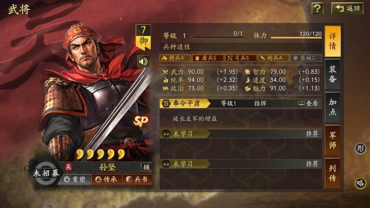 ・関羽・SP関羽・孫堅の全兵種適正がSになる。