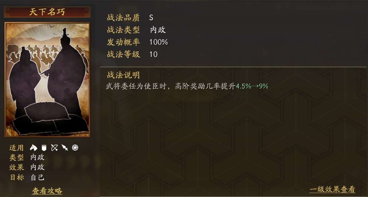 2:夏侯淵の突撃戦法発動後、自身のダメージが10%低下する効果が1ターン持続する。(最大2回まで重ねがけ可能)。程昱の戦法発動率が7%向上する。