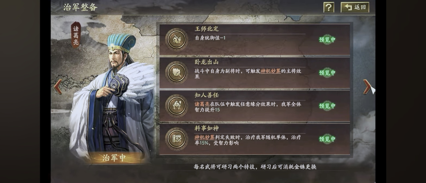 神事如神(しんじじょしん):神機妙算の判定に失敗した場合、治療率が 5%上昇する。( 治療率は 最大15%まで重ね掛け可能、知力の影響を受ける)