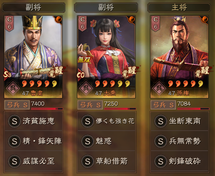 魯粛:精鋒矢陣・威謀必至(三軍救助・統軍・帰心)