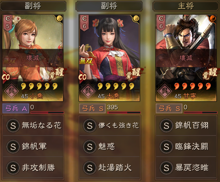 武力の高い甘寧と組み合わせるパターンも有効です。