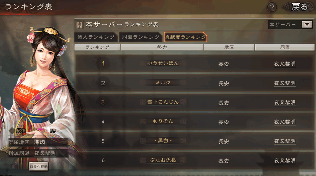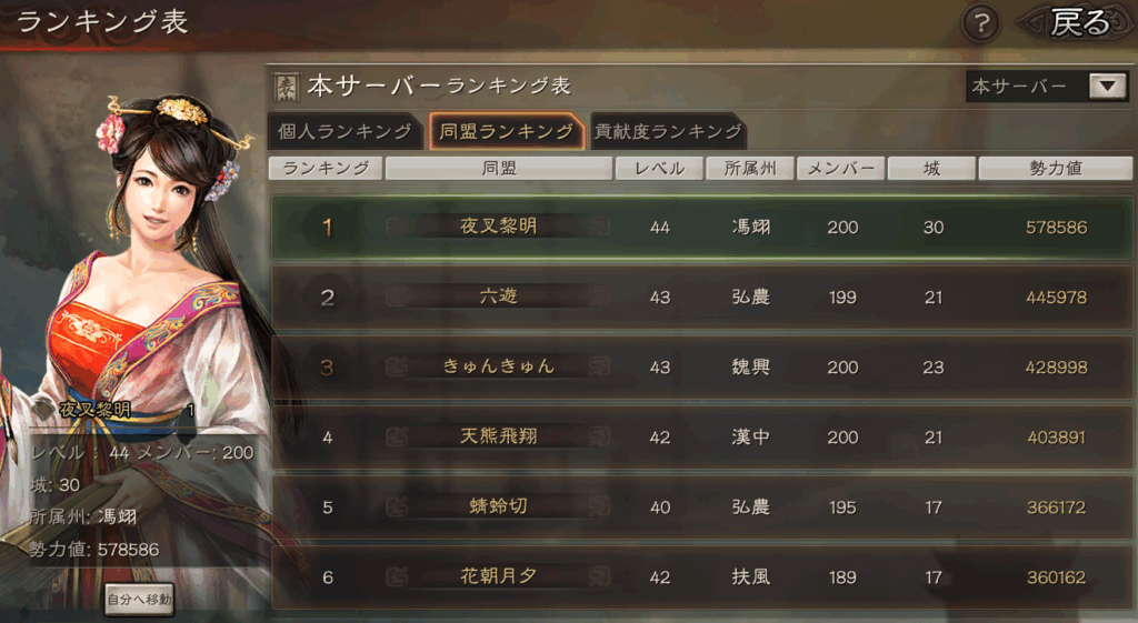 勢力値を見ると、2位から、5位まですべて南陣営となっており、北陣営は非常に苦しい状況となっています。