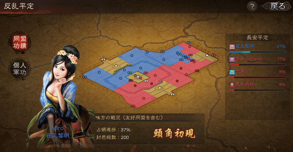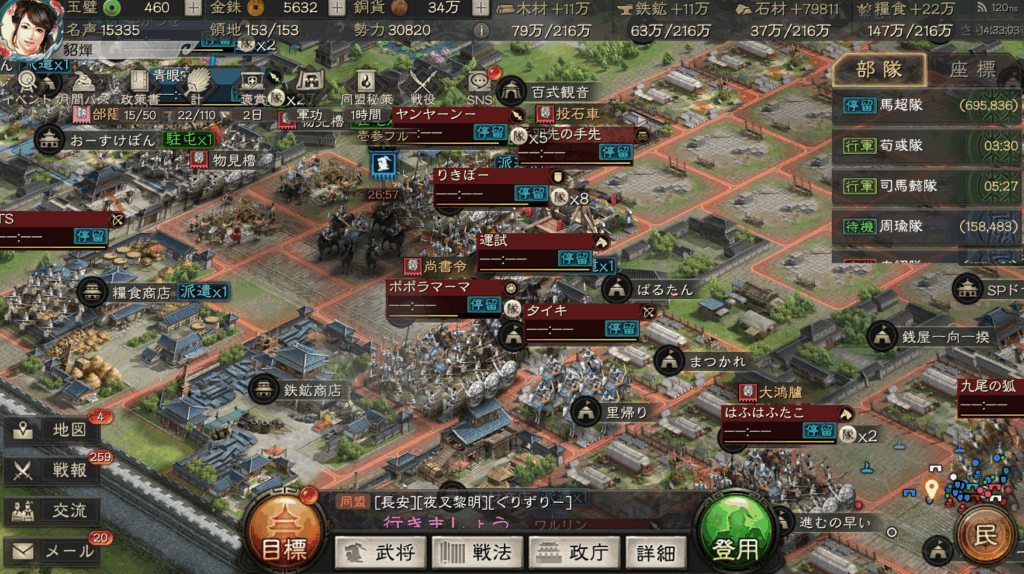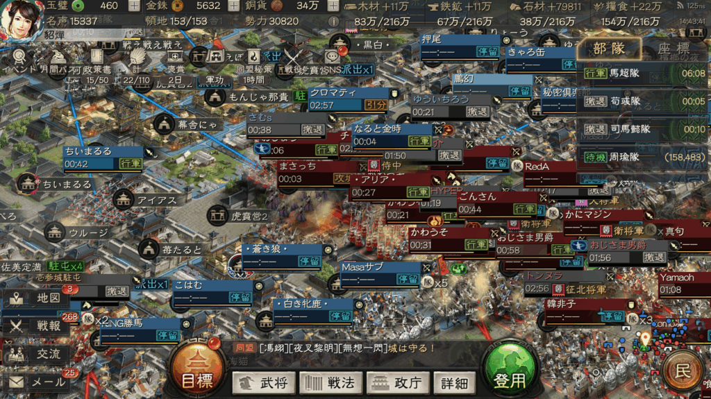 今は、六遊・天熊飛翔・きゅんきゅんの3つの同盟と、3正面で戦っているため、どうしても押し込まれてしまいます。