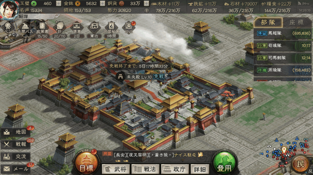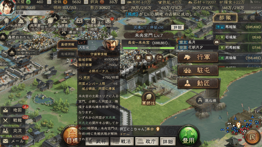 前回もお伝えしましたが、北にある長楽殿をラスアタの取り合いで、夜叉黎明が取得できたため、そちらでポイントを稼ぐことができましたが、こちらは、覇業に関係があるわけではないので、どちらかというと、それほど重要なところではありません。