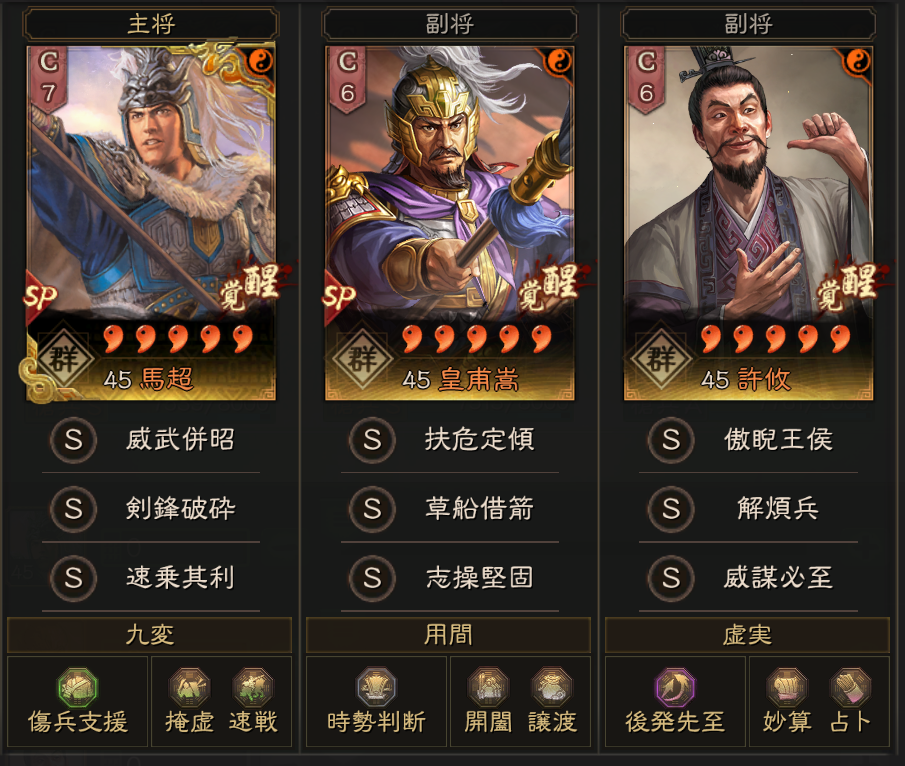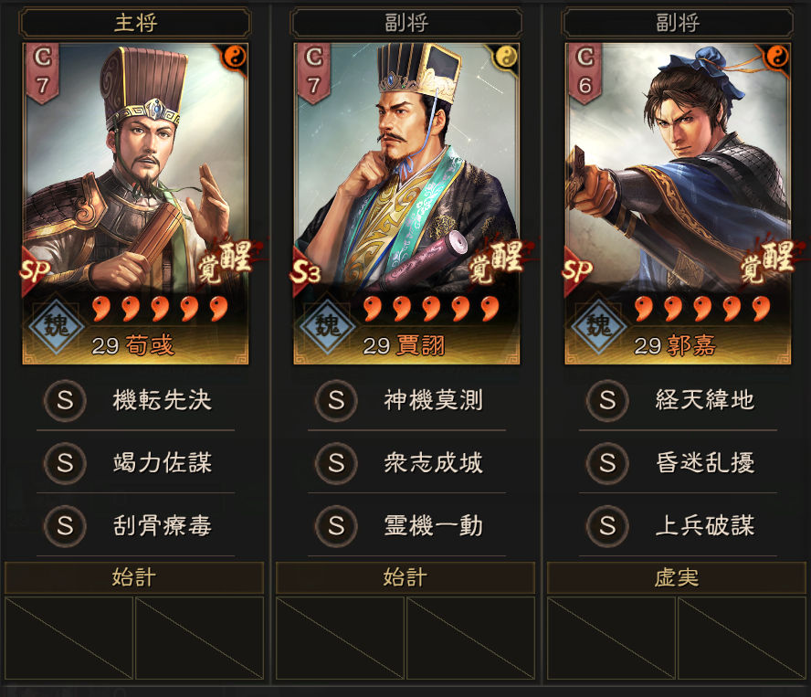曹操陣営の夜叉黎明33、闘猿結義15、蒼き龍1、月華ノ万象1