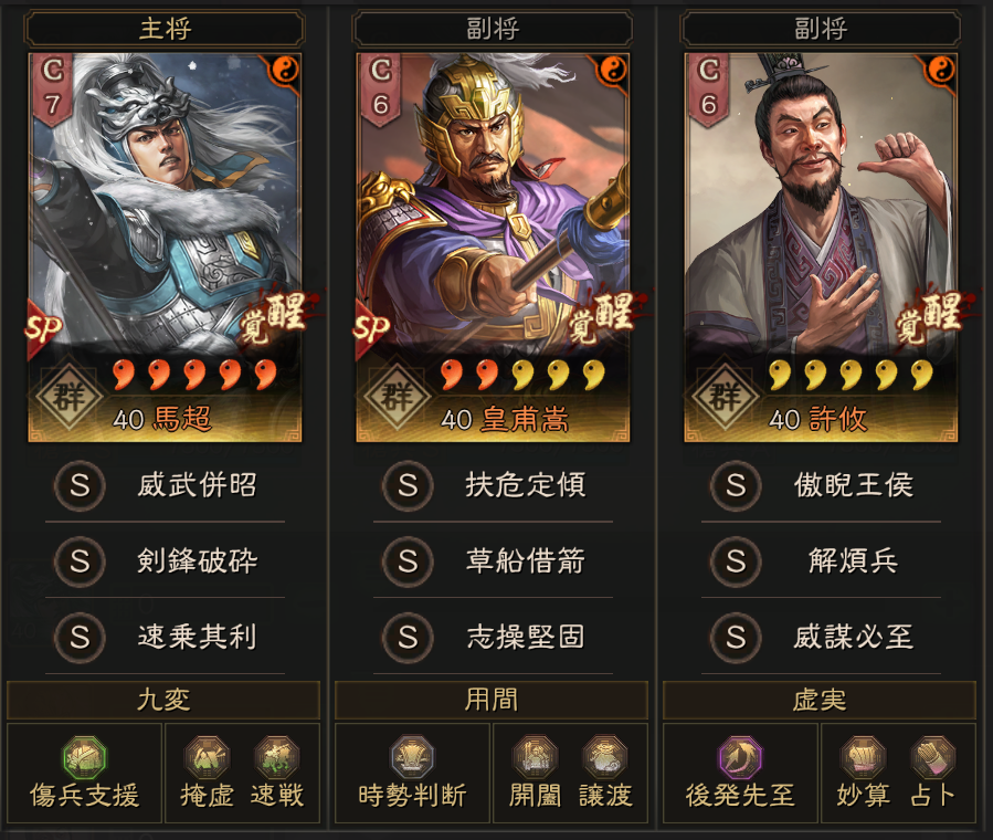 戦法の付け替えが可能であったこともあり、メインアカウントで皇馬槍、兵器2部隊。