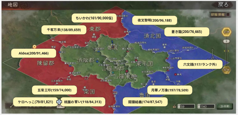 600位以内の比率は、曹操250名に対して、呂布350名となっており、呂布陣営のほうがアクティブなプレイヤーが多いスタートとなりました。