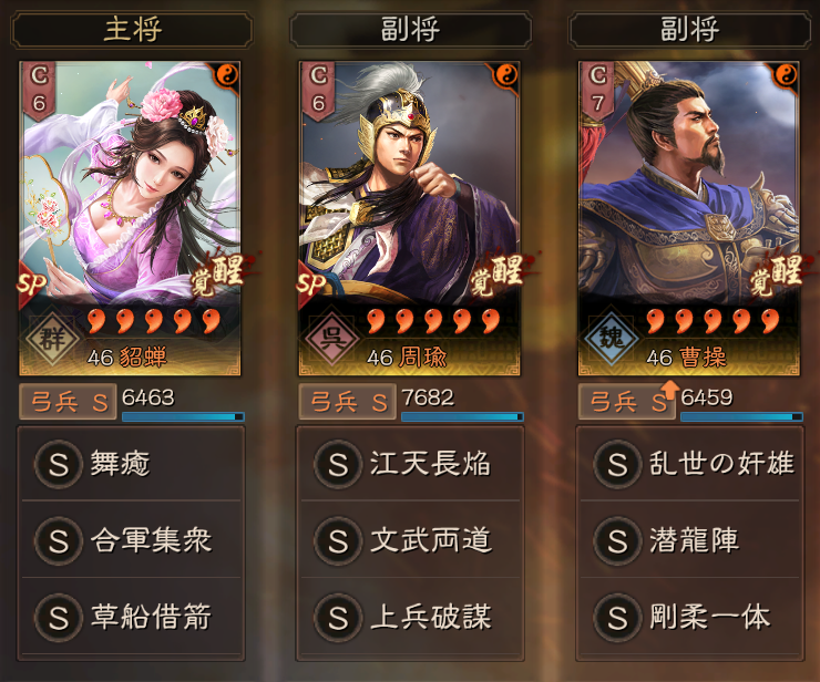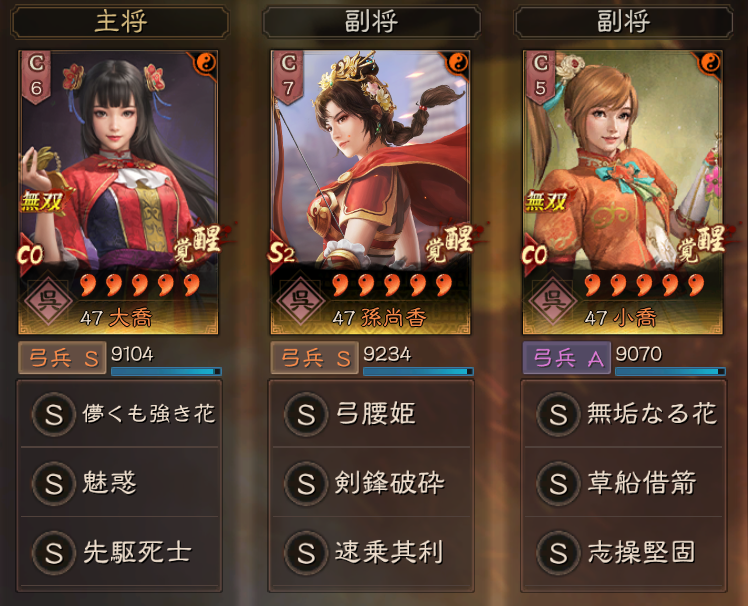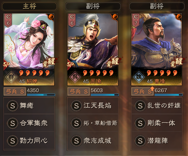 また、呉陣営で揃うため、追加の効果もあり、今期限定ではありますが、部隊強度が高い編成となっています。