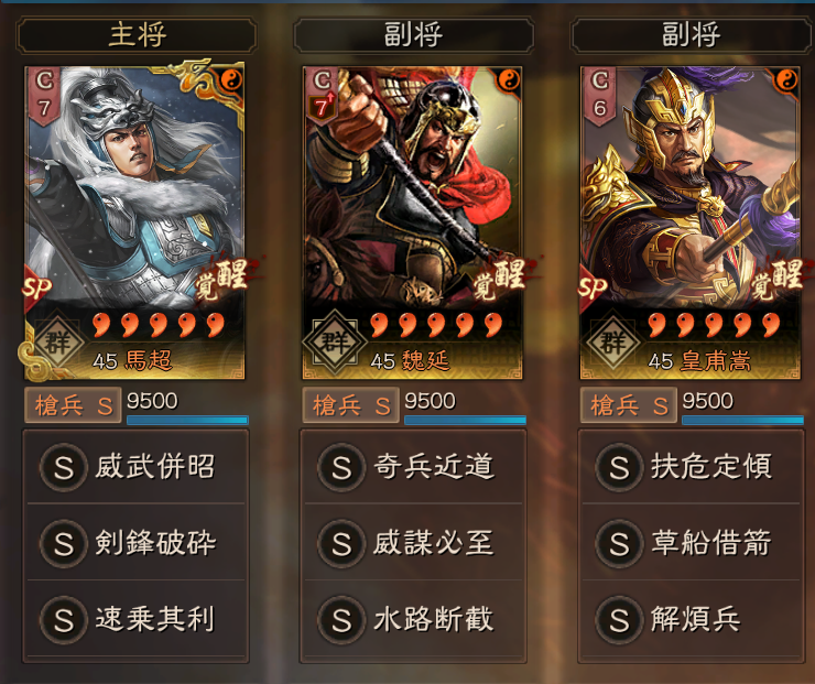 皇馬槍の許攸、皇甫嵩がいなくても、SP馬超を使った編成で強い編成がこちらです。