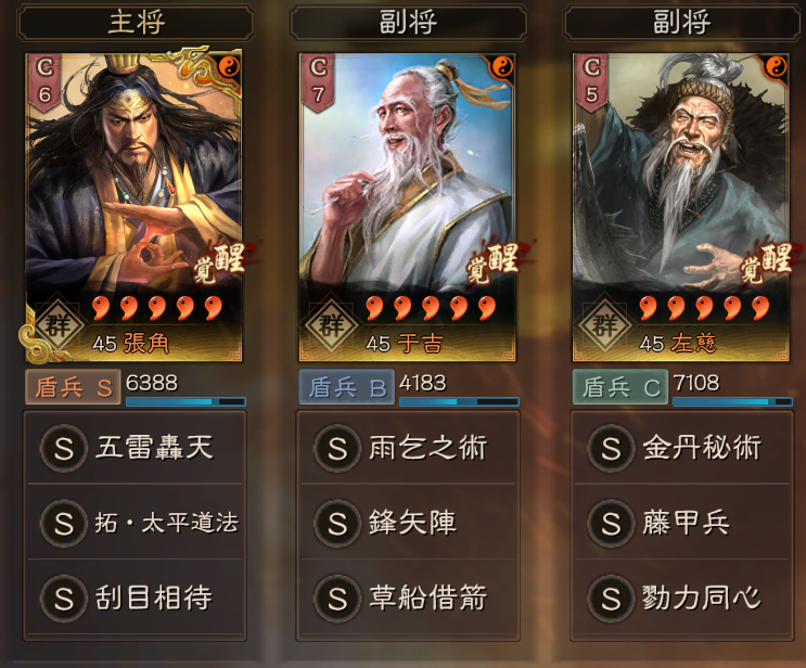 前期は、于吉が統軍武将でしたが、今期は張角が統軍武将の対象になりました。