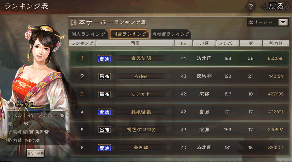対して、曹操陣営は、六文銭がずっと出生州攻城を請け負っていたため、六文銭がランキングに入っていませんが、これから場合によっては入ってくるかもしれません。