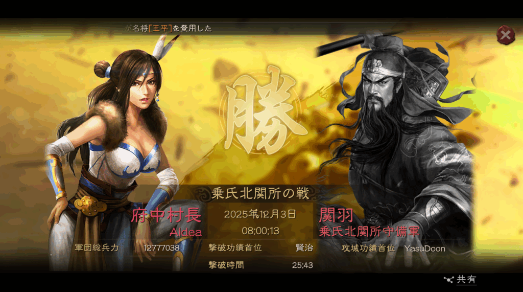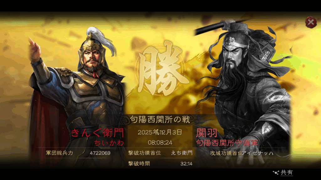 こちらも、このあと、戦法を文武両道・上兵破謀の形にするかどうか、検討中です。