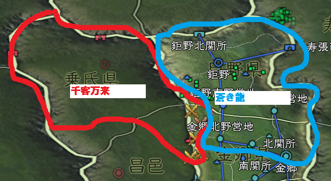 当初は、この北の関から、出生州を狙って、中央に向けて進軍していましたが、千客万来が対応してきたため、関まで押し戻されてしまいました。