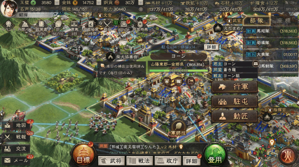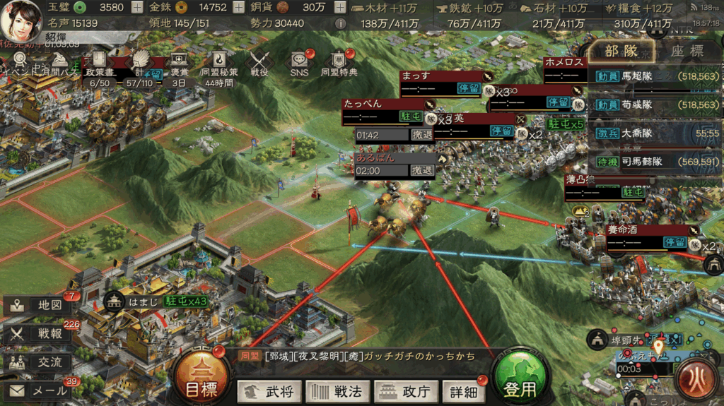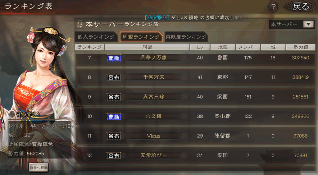 今期は、千客万来クラスの同盟が、呂布陣営の4番手同盟にいるというのが、呂布陣営の強みだと思います。