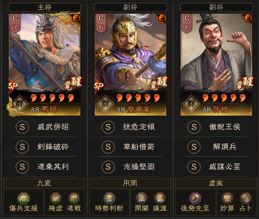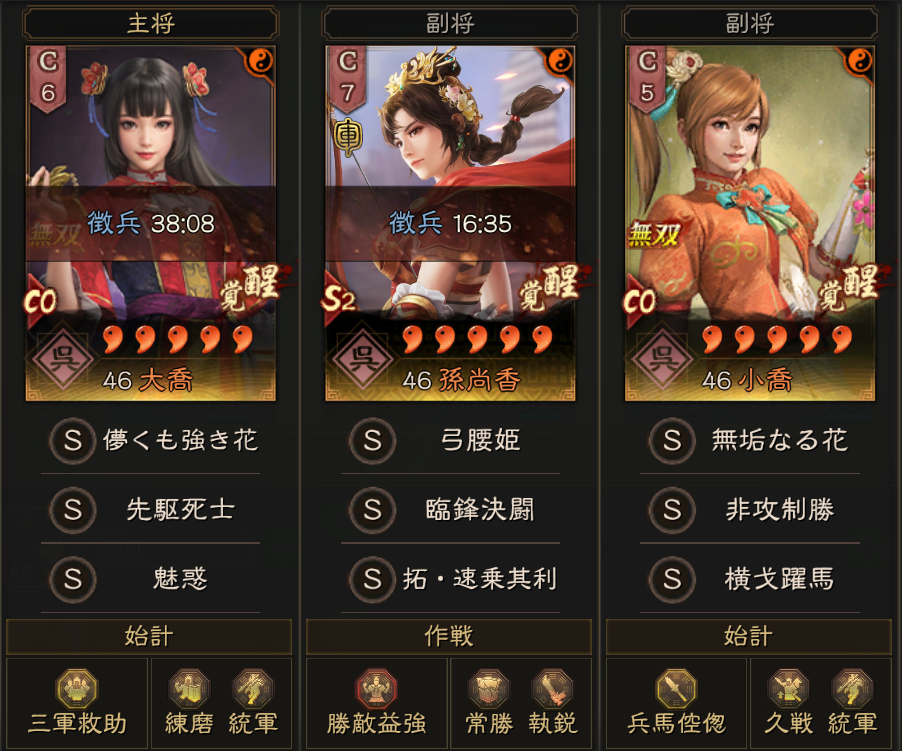 できたら、拓・草船借箭が欲しいところですが、横戈躍馬で我慢して使っています。