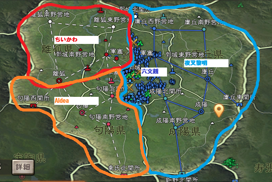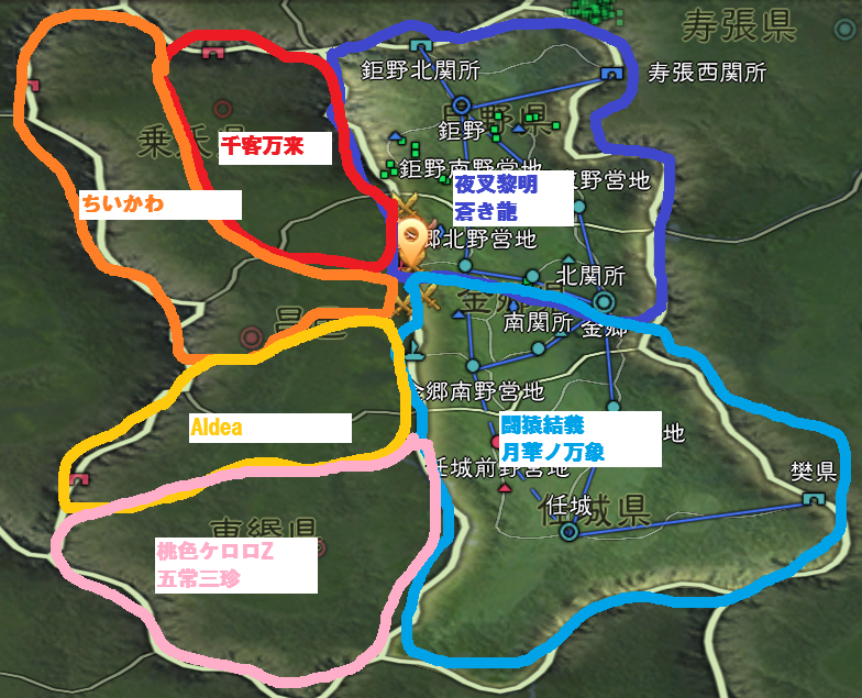 北東方面が、夜叉黎明・蒼き龍の2同盟で、千客万来・ちいかわ・Aldeaの3同盟と対峙する形でした。