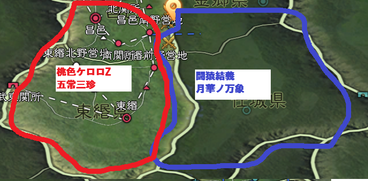南東方面は、闘猿結義・月華ノ万象の2同盟が、桃色ケロロZ・五常三珍と対峙する形でした。
