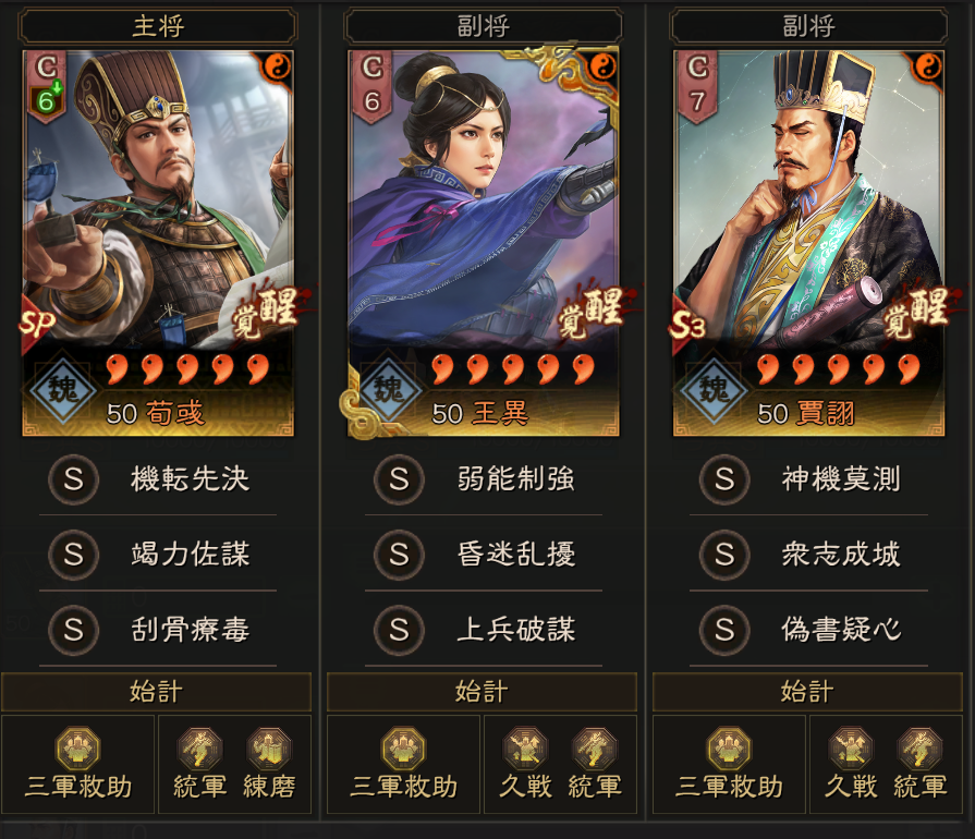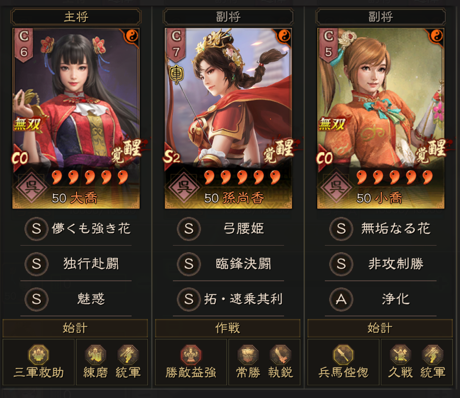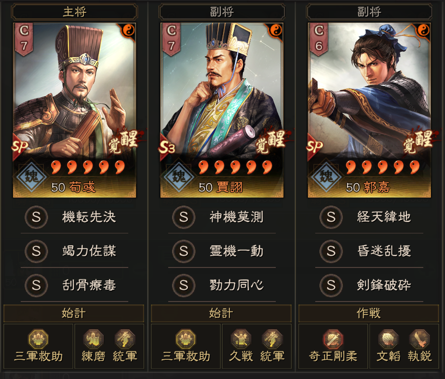 戦況見極を入れた形から、竭力佐謀を入れた形に微調整しました。