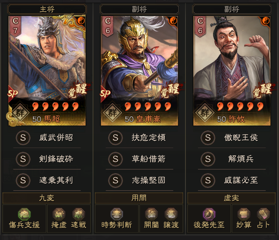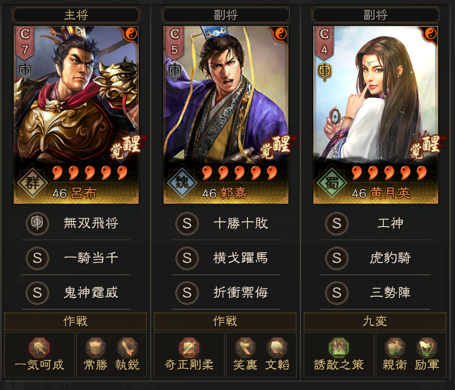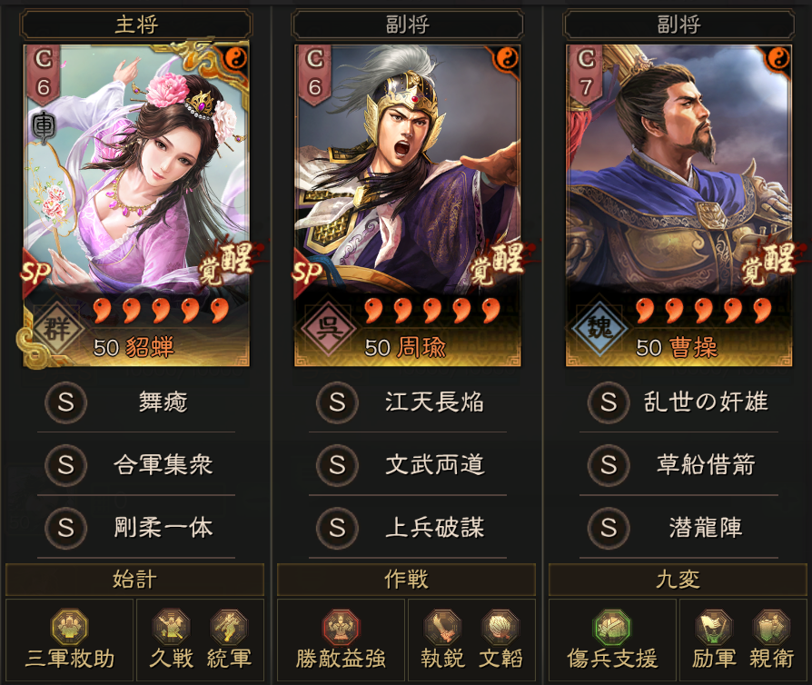 こちらは、皇馬槍を解体して、草船借箭を曹操に、富貴騎の上兵破謀をSP周瑜に持ってきました。