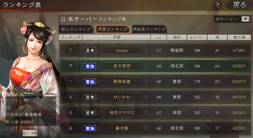 まずは、同盟ランキングから行ってみましょう。