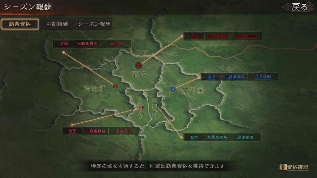 その他は、前回、覇業対象のレベル9の城を手中に収めた闘猿結義が3位になり、4位がちいかわ、5位が桃色ケロロZ、6位が蒼き龍という順番です。