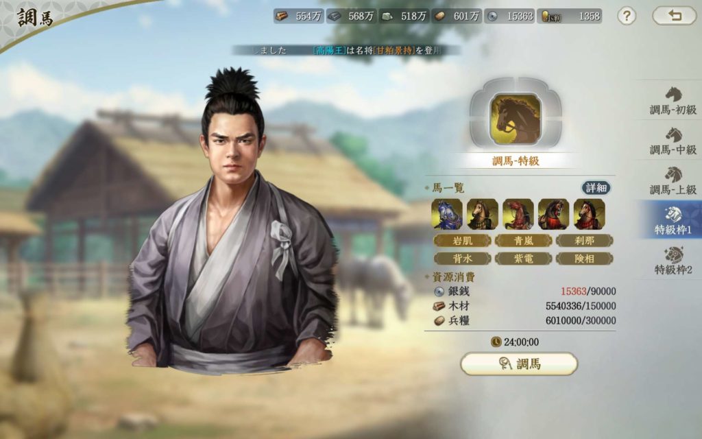 まず、シーズン1のうちから野盗の討伐、鍛造、調馬は積極的にやっていきましょう。