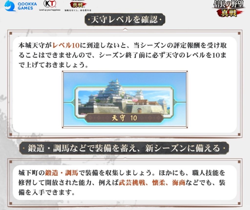 天守レベルが10に達していないと、シーズン評定(決算)報酬を受け取ることができません。