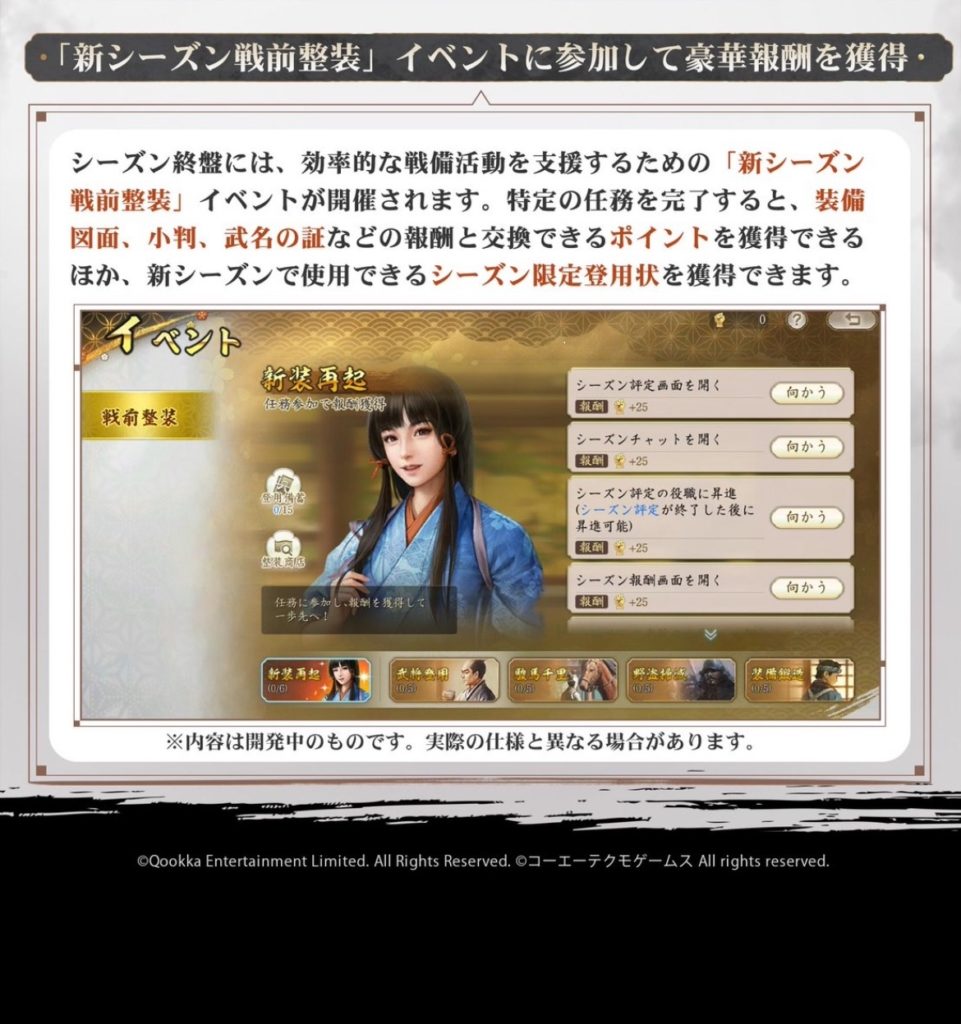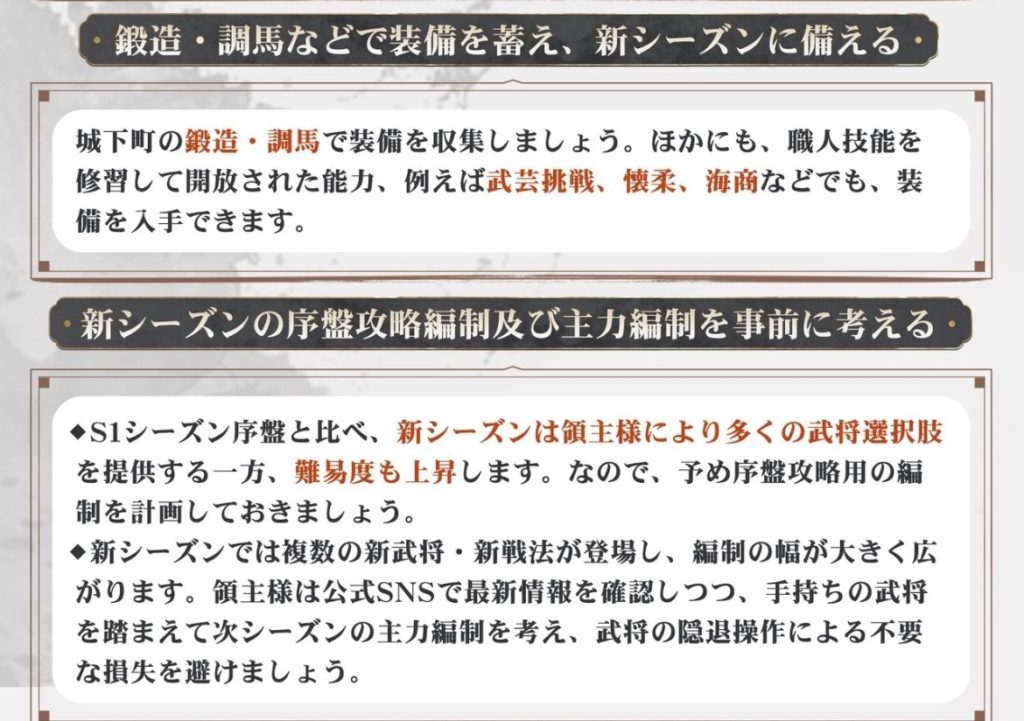 注目したいのは、「新シーズンは領主様により多くの武将選択肢を提供する一方、難易度も上昇します。」と記載があります。