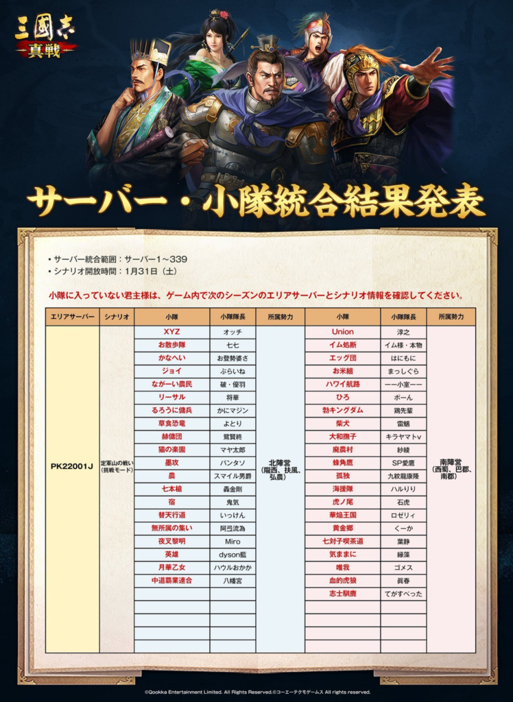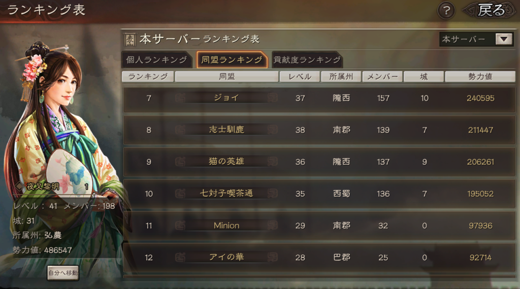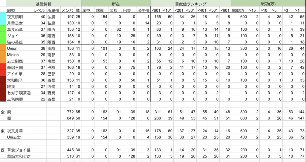 敵陣営の割り振りを見ると、左に大和撫子、七対子喫茶通の2同盟が入りました。
