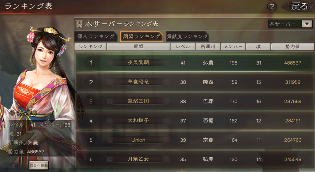 特に夜叉黎明は、貢献度ランキング上位100名に、60名が入っており、いつも通りのバランスになっています。