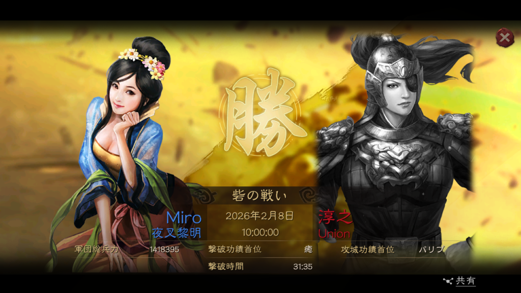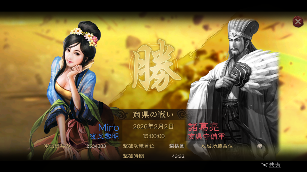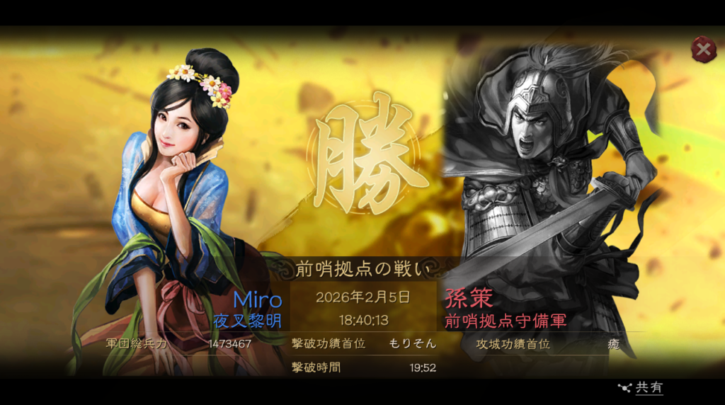 結果は、駐城部隊が抜けずに失敗してしまい、少しだけ遅れてしまいました。