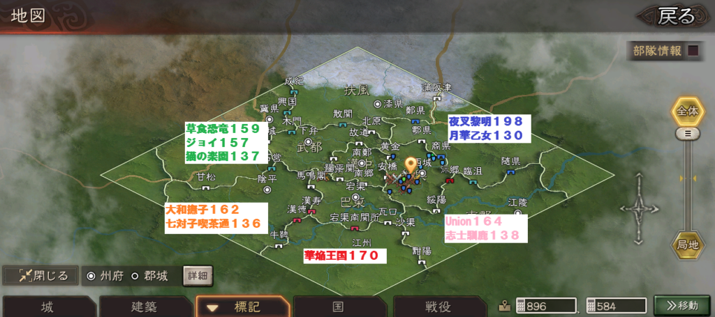 資源州においては、中央の争いで、60%取得なので、やや北陣営が優勢を保ったまま、明日、レベル9の関が解放されます。