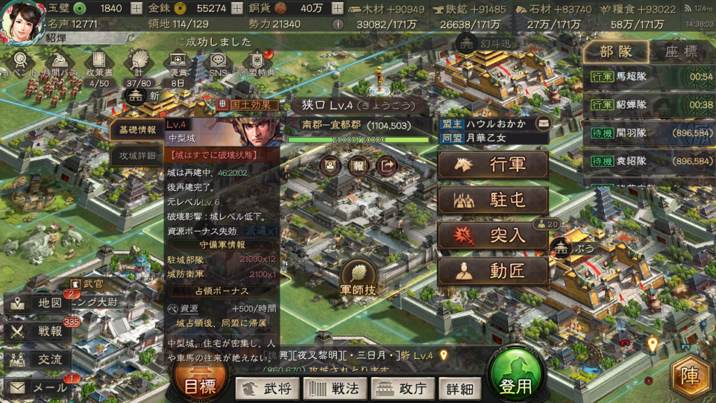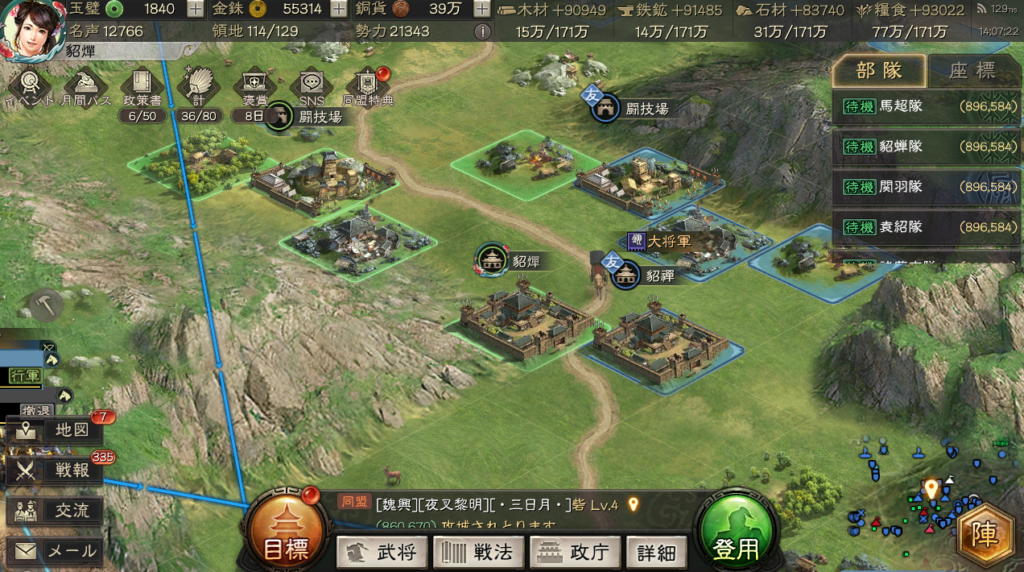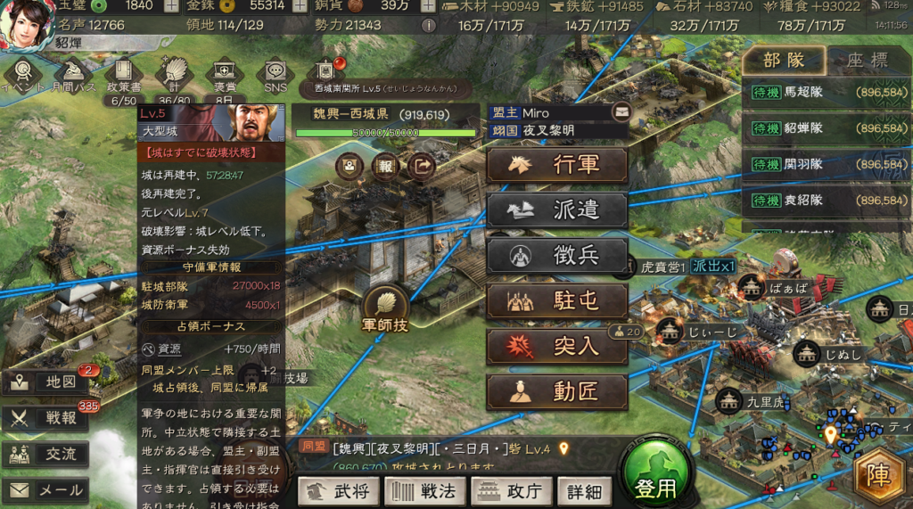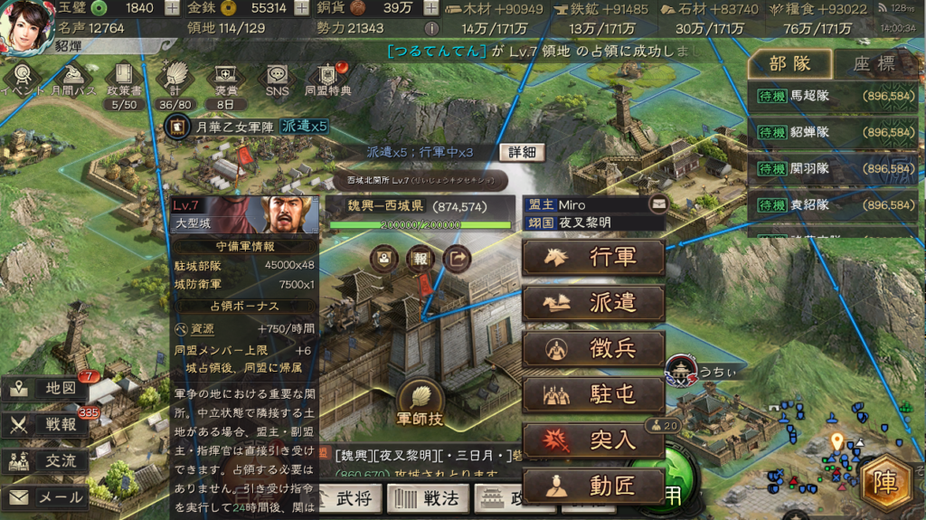 このききょうという資源州への関レベル7から、目と鼻の先にあるため、かなり行軍が難しい状況になりつつあります。