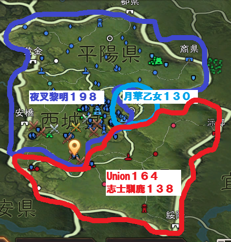 右側が、Unionと志士馴鹿の2同盟といった配置になりました。