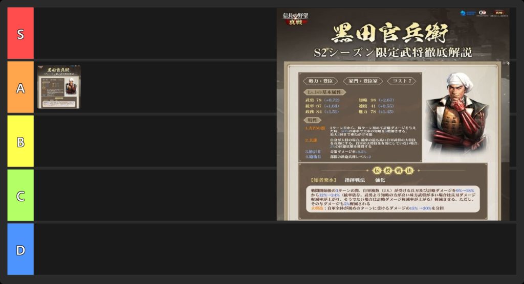 ただ、黒田官兵衛自身が、かなり強力な武将となっています。