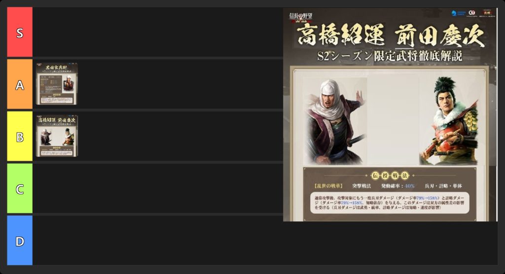 高橋紹運が群雄勢力、前田慶次が織田勢力、のそれぞれで活躍する可能性はありますが、