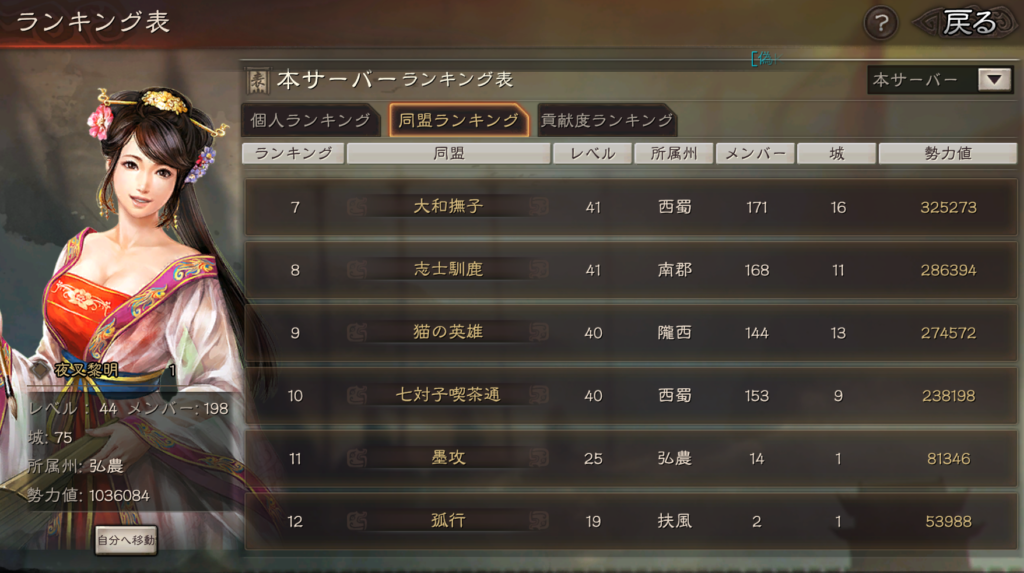 今週の同盟ランキングはこのようになりました。