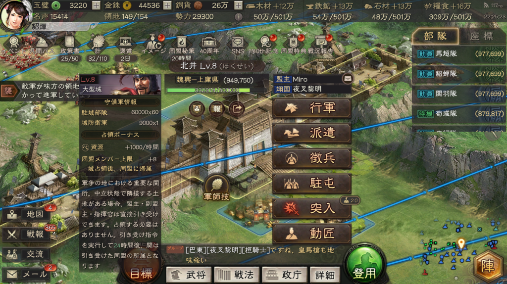 北井の関は有人攻城でしたが、こちらは敵陣営が防衛に来なかったため、ほぼフリーで手に入れることができました。