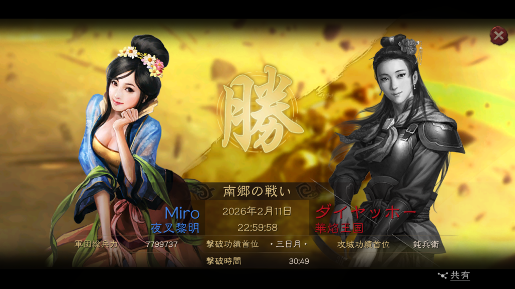 そこで得たアドバンテージを利用して、2月11日の23時に、夜叉黎明が南東の関である南郷の奪取に成功します。